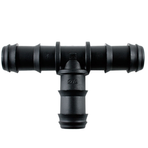 T kus PN4 na jednoduché vetvenie prívodnej PE hadice resp. kvapkovacej hadice. Umožňuje rýchle zostavovanie bez náradia, ale nie je možné neskôr spoj rozobrať, len rozrezaním hadice.